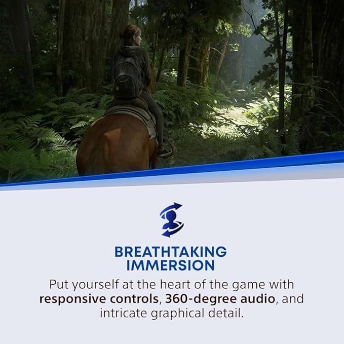- Haptic Feedback: Experience haptic feedback via the DualSense wireless controller in select PS5 titles and feel the effects and impact of your in-game actions through dynamic sensory feedback. Adaptive Triggers: Get to grips with immersive adaptive triggers, featuring dynamic resistance levels which simulate the physical impact of in-game activities in select PS5 games.